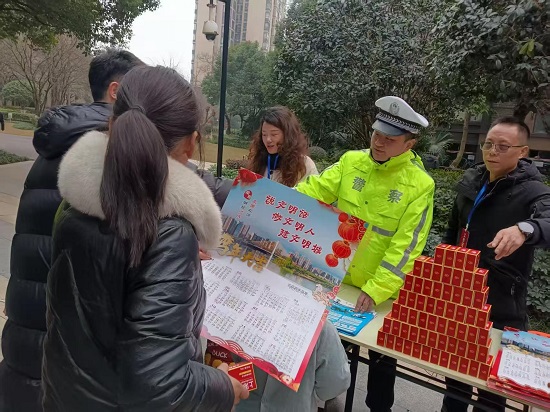 活动现场,社区网格员及志愿者向居民详细讲解冬季用火用电安全、移风易俗、抵制大操大办以及防范春节红包诈骗、年货诈骗等内容。工作人员以通俗易懂的语言讲解文明城市创建的意义、核心内容及日常文明规范,涵盖垃圾分类、邻里和睦、文明养犬等与居民生活密切相关的方面。期间,工作人员倾听居民建议,耐心解答疑问,引导居民从自身做起、从小事做起,主动融入创建工作。潆溪交警中队民警则以“文明交通,你我同行”为主题,结合典型案例,生动讲解安全出行、礼让守规的重要性,引导大家自觉成为文明交通的参与者与守护者。
