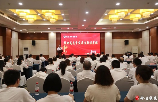 为深入学习贯彻习近平总书记关于高质量发展的重要论述和对四川工作系列重要指示精神,深刻领会近期党中央系列会议精神和省、市、区委部署要求,进一步提升全院干部职工的综合素质和业务能力,推动医院实现高质量发展。近日,南充市中医医院举办了一场为期三天的“医院推动高质量发展专题读书班”。医院党政领导、中层干部、科室业务骨干等200余人参加培训。