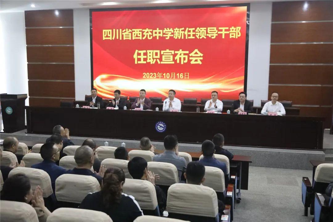 10月16日上午,四川省西充中学学术厅召开干部任职宣布大会。市委教育工委专职副书记唐永强,市委教育工委工作领导小组秘书科长刘志鹏,县委常委、宣传部长李西蜀,县委组织部部委委员青睿,学校全体行政干部、各年级组长、各学科备课组长参加会议。县委教育工委书记、局党委书记、局长阳国华主持本次会议。