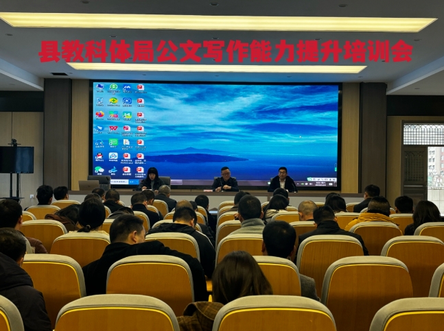 为加强学习型机关建设,提升我局干部职工的政治素质和公文写作处理能力,提高办公效率和工作质量,12月2日,县教科体局机关干部职工公文写作能力提升培训会在局六楼会议室召开。县委教育工委书记,县教科体局党委书记、局长张毅出席会议并讲话,局党委委员张莘晤主持会议。局机关全体成员参加培训。