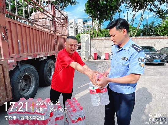 6月27日,农夫山泉股份有限公司南充办事处携手南充新鸿盛公司,向奋战在顺庆区潆溪街道、西山街道、共兴镇的一线工作者送去饮用水,致敬他们烈日下的坚守。