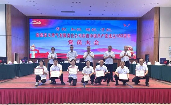 为庆祝中国共产党成立103周年,推动党纪学习教育走深走实,激励公司各党支部和广大党员同志坚定理想信念、牢记初心使命。7月1日上午,四川省南部县天然气有限责任公司在豪威益酒店多功能厅举办了以“学纪 知纪 明纪 守纪”为主题,庆祝中国共产党成立103周年系列主题活动,公司全体党员、预备党员、入党积极分子、中层干部及部分职工代表参加此次活动。