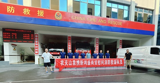 近期,全国不少城市遭遇多年未见的酷暑天气,四川南充也同样持续热浪滚滚。为表达对坚守一线的消防官兵的关心和敬意。连日来,农夫山泉股份有限公司南充办事处携手南充新鸿盛公司工作人员特地准备了1000件共计24000瓶规格550ml的爱心饮用天然水,先后前往顺庆、高坪、嘉陵三区消防救援大队,向在炎炎夏日中坚守一线岗位的消防官兵送上清凉的问候,感谢消防官兵对辖区安全秩序的辛苦付出,感谢他们高温下的坚守。
