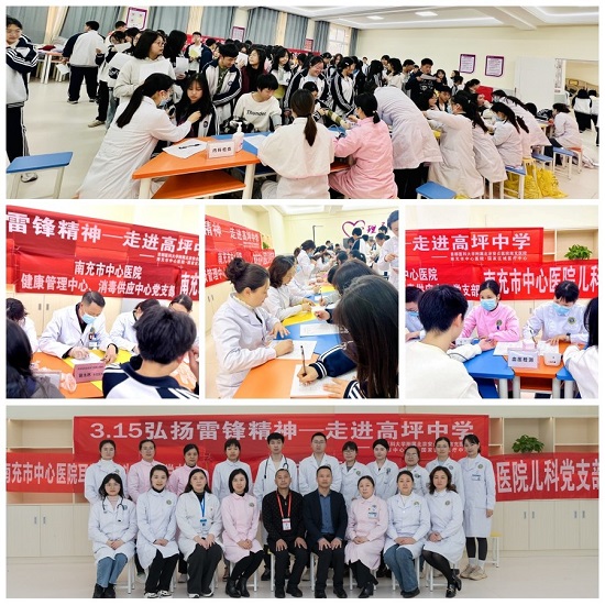为传承弘扬雷锋精神和“奉献、友爱、互助、进步”的志愿者精神,3月15日,首都医科大学附属北京安贞医院南充医院(南充市中心医院)多个支部组成学雷锋志愿者服务队,前往高坪中学开展爱心义诊送健康活动。活动得到了学校领导和老师的大力支持,吸引了众多学生积极参与。