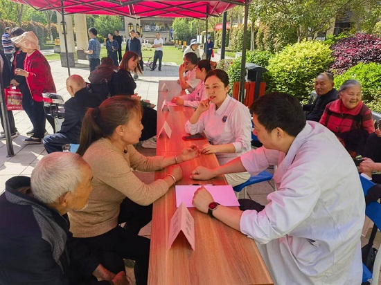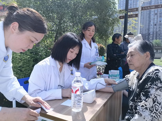 义诊现场,来自安贞南充医院肛肠科、康复科、重症医学科、临床药学、临床护理、妇产科、中医科等科室的医护人员,为居民检查身体、解答疑问、普及健康知识并免费提供血压检测、孕前优生健康检查、心肺听诊等常规检查;为部分患有慢性病的老人进行用药调整,给出具体的诊疗建议和治疗方案。