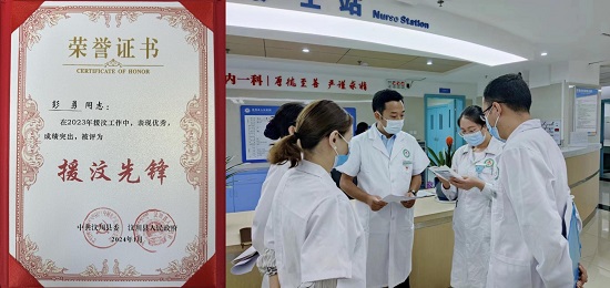 通过安贞南充医院扎实深入的“组团式”帮扶,汶川县人民医院成功开展纤维支气管镜等新技术新项目20余项,顺利创建省级临床重点专科2个、州级重点专科3个,建成阿坝州第八批院士(专家)工作站,签约专家20人。2022年和2023年,该院门急诊患者人次年均增长7.14%,出院人次年均增长16.38%,住院手术台次年均增长13.04%,III、IV级手术保持20%以上,患者满意度高达96%,在安贞南充医院的帮助下,汶川县人民医院的医疗服务能力明显提升,当地患者及其家属免去过去奔波辗转的求医之苦,汶川县百姓有了新“医”靠。2023年,汶川县人民医院荣获“全国优质服务百佳医院”称号,“组团式”帮扶队长、院长彭勇荣获“全国医疗行业服务先进管理者”和“援汶先锋”称号。