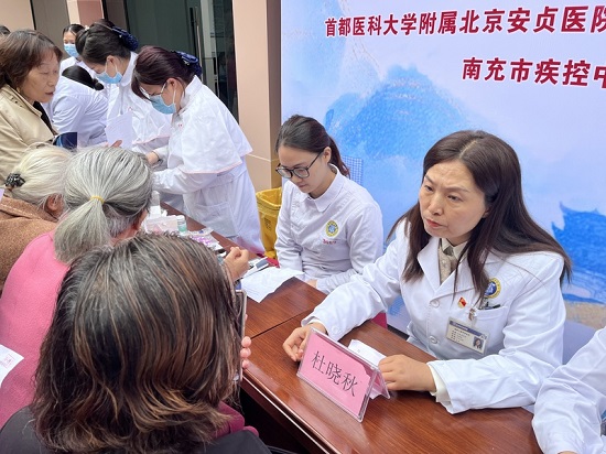 早晨7:30,顺庆区新建社区卫生服务中心人头攒动。由南充市疾控中心慢病所所长杨千山,北京安贞南充医院内分泌科主任医师王晓娟、护士长易诗琼,新建社区医疗科科长杜晓秋等组成的义诊团队耐心为患者答疑解惑,纠正糖友们在糖尿病防治过程中的常见误区。