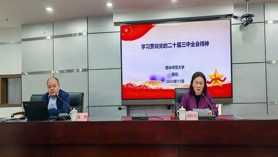 为深入学习贯彻党的二十届三中全会精神,领会习近平总书记关于全面深化改革的一系列新思想、新观点、新论断,切实把思想和行动统一到党中央决策部署上来。11月13日,南充市国动办机关支部邀请西华师范大学易刚教授对党的二十届三中全会精神进行宣讲,宣讲会由党组书记、主任郭红英主持,市国动办全体干部职工参加会议。