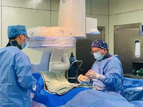该患者因反复心慌、气促伴心悸1个月入院,经系统检查确诊为扩张性心肌病合并阵发性室性心动过速,存在极高猝死风险。心内科黄洪主任详细告知患者病情并征得家属同意后,经医学影像科、功能检查科等多科室联合会诊,确定采用国际公认的AICD植入术治疗方案。