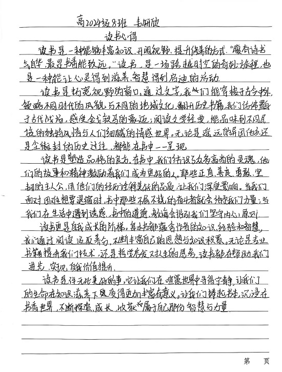 读书活动主题研讨会上,高一八班韦妍欣同学表示:“读书是拓宽视野的窗口,通过文字,我们能够穿梭于古今中外,领略不同时代的风貌,感受不同的地域文化。”周丽萍同学也说:“读书是一场奇妙的自我发现之旅,翻开泛黄的书页,墨香氤氲间,我遇见了无数个自己。合上书页,文字已然内化为生命的一部分。”