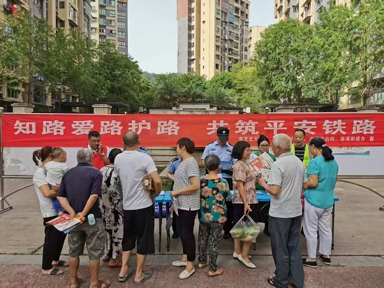 在南充五中青龙山学校,民警以讲座的形式,生动形象地和师生分享爱护铁路的安全常识,通过“铁路安全知识”抢答互动方式,在向师生发放印有铁路安全知识的小礼品和铁路安全宣传资料的过程中,开展“爱路护路”宣传,嘱咐大家利用课余时间认真学习铁路安全知识,践行爱护铁路行为,以实际行动争当铁路交通安全的“小卫士”和“宣传员”。