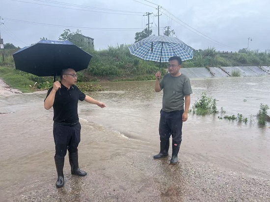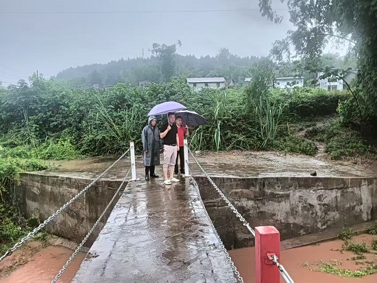 清晨,潆溪街道辖区大雨如注,无数雨滴猛烈地射向地面,似乎要将每一寸土地都浸透。巡查队按照街道部署,迅速兵分多路,沿河道、穿村社,对漫水桥、漫水坝、涵洞、水库等防汛重点部位展开“拉网式”巡查。