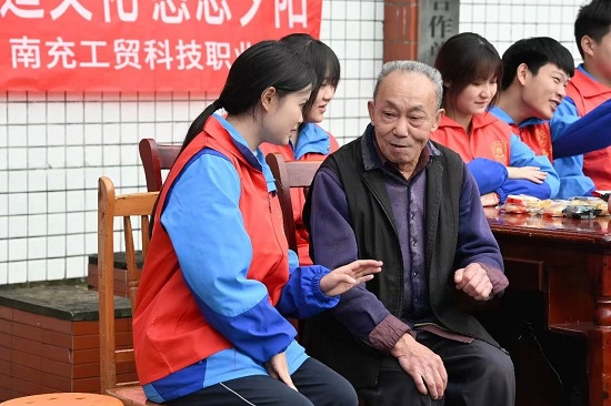 随后,师生与老人坐在一起闲聊话家常,为老人剪指甲、捶背、整理被盖,详细询问老人近来的生活情况和身体状况,鼓励他们多锻炼、多活动,安享晚年。他们耐心地陪伴老人们聊天,分享生活中的点滴趣事,让老人们在这个特殊的日子里不再感到孤单。