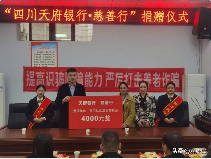 支行相关负责人介绍,四川天府银行一直以来秉承“心存善,水润物”核心价值观,始终关注和重视慈善事业,特别是在“城市暖心工程”实施以来,他们加大了参与力度,持续为困难群众、居民提供更多的便利和帮助。