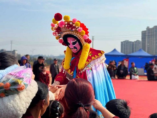 下午2时许,现场中心舞台处掌声雷动,舞狮表演率先登场,瞬间点燃全场热情。一只色彩艳丽的雄狮昂首挺胸、身姿矫健,伴随着铿锵有力的锣鼓声与悠扬的唢呐声,时而腾跃翻滚、时而昂首摆尾,时而俯身探头、时而欢快跳跃,憨态可掬的模样中透着昂扬气势,将新春的喜庆氛围传递给在场每一位观众。紧随其后的川剧变脸表演,更是将现场氛围推向高潮。变脸艺人身着绚丽的传统川剧服饰,头戴精致头饰,脸上的神秘脸谱随动作灵活切换,一转身、一抬手、一甩袖间,红、黄、蓝、黑、白各色脸谱轮番亮相,变化之迅捷、手法之精妙,令人目不暇接、啧啧称奇。当艺人缓缓摘下脸谱向观众致意时,现场欢呼声、喝彩声响彻整个广场,大家无不被这门传统非遗技艺的神奇所折服,纷纷拿出手机记录精彩瞬间,深切感受中华传统文化的博大精深与独特魅力。