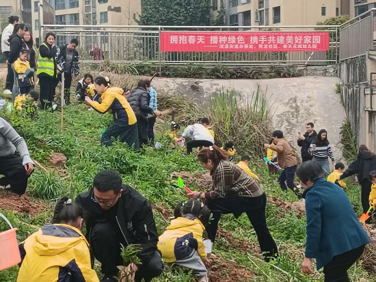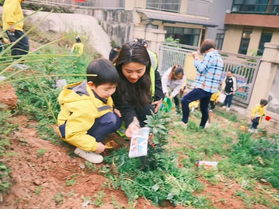 为让孩子们深入了解植树意义,社区工作人员还现场开展环保科普,向130余名小朋友讲解植树节的由来、绿化对环境保护的重要作用,并亲手示范挖坑、栽种、填土、浇水的正确方法。130余名小朋友被分为5组,在家长、老师及社区工作人员的指导下,亲手拿起小铁锹,认真完成每一个种植步骤,尽管小手沾满泥土,脸上却始终洋溢着纯真的笑容。大家边劳动边交流植树心得,现场氛围热烈而温馨。