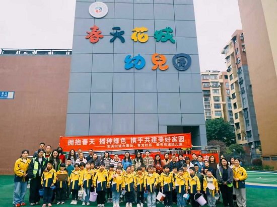 经过两个多小时的齐心协力,500余棵桂花树苗顺利栽种完成,在春风中轻轻摇曳,为春天花城周边增添了一抹新绿。种植结束后,小朋友们在家长的协助下,为自己栽种的小树苗系上专属名牌,寄托“希望小树快快长大”的美好心愿,稚嫩的声音喊出“小树苗要快快长大,明年春天开满桂花”,欢声笑语回荡在活动现场。