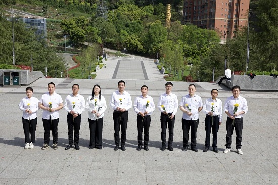 在庄严肃穆的革命烈士纪念碑前,全体党员整齐列队,神情凝重。党员们缓步走向纪念碑,向革命先烈敬献鲜花。随后,全体人员垂首默哀三分钟,向为民族独立、人民解放和国家富强英勇献身的英烈致以最深切的悼念。