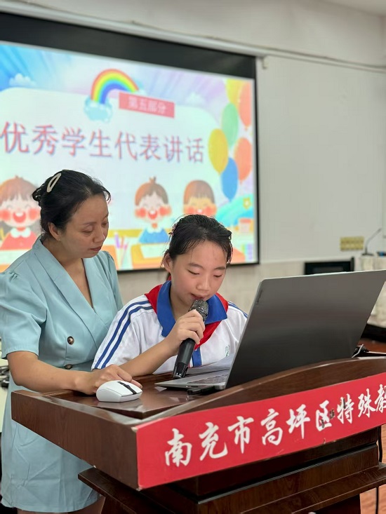 优秀学生代表胡茂舆同学分享了学习心得和新学期计划,展现了特校学生自强不息的精神风貌。“好家长”代表向美琪妈妈分享了家庭教育心得,强调了家校合作的重要性,她的发言真挚动人,为其他家长提供了宝贵经验。