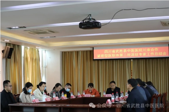 2024年3月19日,四川省武胜县中医医院召开川渝合作重庆市中医院紧密型医联体武胜示范医院第二批驻点支援专家工作总结会。 会议由党委委员、副院长廖运生主持,重庆市中医院第二批驻点专家邱红、肖楸钶、余自君,职能科室相关负责人、科主任及护士长参会。 院党委委员、副院长廖运生表示,此次会议不仅是对重庆市中医院第二批驻点支援专家工作的总结,更是双方医院深化合作、共同发展的另一起点。医院将继续加强与重庆市中医院的深度合作与交流,不断提升医疗服务水平和医院管理水平,为广大患者提供更加优质的医疗服务。