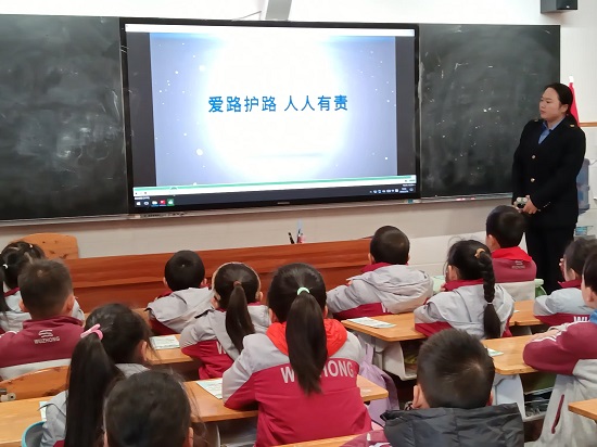 活动中,南充北火车站工作人员围绕铁路安全常识、市辖三区发生的真实案例向同学们深入浅出的讲解铁路安全的重要性、常见的安全隐患以及如何避免这些隐患。在讲解的过程中,还结合相关的法律法规进行教育,让同学们了解破坏铁路设施、击打列车等行为的法律后果,向同学们强调,生活中确保要记住并做到,不在铁路及沿线上滞留、行走、玩耍;不击打列车;不在铁路沿线升放气球、风筝等,引导同学们自觉遵守铁路交通法规,鼓励他们将“爱路护路”知识融入日常生活,争做爱路护路“小卫士”“小雷锋”“小记者”。
