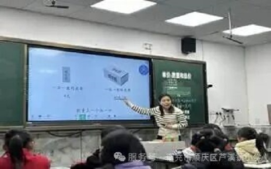 南充市顺庆区芦溪镇小学李佳老师率先拉开课堂帷幕。她执教的五年级《植树问题》以猜谜认手巧妙引入,将抽象的间隔概念变得触手可及。面对20米总长的案例,李老师引导学生“化繁为简”,一步步探索间隔数与棵树的奥秘。课堂上,孩子们眼神专注,思维活跃,从羞涩到踊跃,展现了农村孩子特有的朴实与聪慧。
