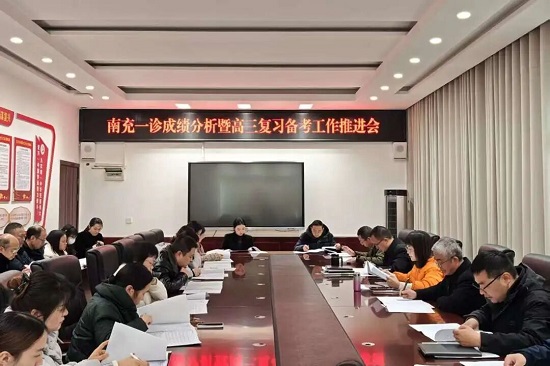 为精准复盘南充一诊成效,明晰备考短板与改进方向,凝聚全员攻坚合力,高效推进高三复习备考工作,12月16日,南充龙门中学召开了高2026届南充一诊成绩分析暨高三复习备考工作推进会。执行校长张莉梅、党委副书记兼高三年级组长唐兵、副校长张洪波、相关科室干部及高三全体教师参加会议。会议由副校长张洪波主持。