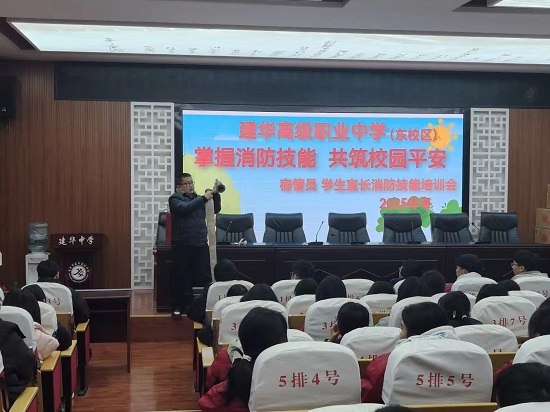 宿舍是师生在校生活的温馨港湾,消防安全则是守护这份温馨的“生命线”。为切实强化校园防火安全管理,提升宿管员与学生室长的消防安全意识和应急自救能力,筑牢校园安全防护网,南充市建华高级职业中学于12月24日下午隆重举行宿管员、学生室长防火专项培训会,为全校师生的生命财产安全保驾护航。