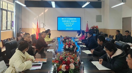 为了进一步落实省、市、区关于省内对口帮扶的工作部署,切实发挥优质教育资源的辐射引领作用,搭建校际交流合作桥梁,助力立德树人根本任务落地见效,2025年12月26日,南充七中党总支书记、顺庆区苏小毅名教师工作室领衔人苏小毅带领南充七中党总支委员郑春玉、办公室主任李兵、政教干部杨文忠、教学质量中心主任李玥秋及顺庆区苏小毅名教师工作室成员卢彦蓉一行6人赴阿坝州汶川中学教育集团绵虒校区,开展以“减负提质 赋能未来”为主题的帮扶活动。