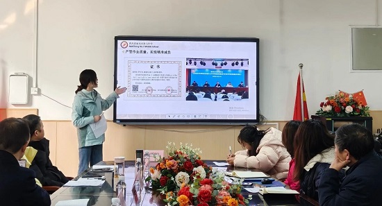 随后,举行了关于“减负提质 赋能未来”教育教学研讨会。汶川中学教育集团绵虒校区执行校长刘忠荣、党支部副书记曾宪宏、副校长高晓莉,以及绵虒中学中层干部、教师代表参加会议。汶川中学教育集团绵虒校区高晓莉校长从正视现实困境,锚定减负提质核心方向;聚焦关键环节,落实减负提质具体举措;成效展示与未来展望三个方面,分享了实践经验与思考。南充七中李玥秋老师从聚焦课堂增效,夯实教学根基;强化师资建设,赋能专业成长;严管作业质量,实现精准减负;构建幸福课程,促进全面发展;守护身心健康,护航快乐成长;深化家校共育,凝聚育人合力六个方面,作了全面且深入的交流。两校在思想碰撞中凝聚了 “减负提质” 的育人共识,为后续教学工作的开展明确了方向。