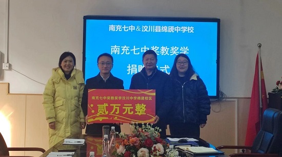 研讨会结束后,举行了奖教奖学捐赠仪式。南充七中向汶川中学绵虒校区捐赠两万元,用于奖励绵虒中学优秀教师、优秀学生。随后刘忠荣校长致答谢词。