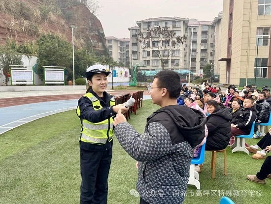 为进一步增强全校师生及家长的交通安全意识,提升特殊学生在交通环境中的风险防范与自我保护能力,构建“家校警”协同联动的安全防护网,1月14日上午,高坪特校在操场组织开展了一场生动实用的交通安全专题讲座。