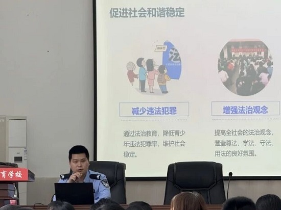 讲座过程中,何所长重点讲解了电信诈骗的概念、诈骗的多种方式,让现场的师生们深刻认识到法律与生活的紧密联系,以及违法行为的严重后果。易涛警官结合审判实践中的工作经验和典型案例,围绕预防青少年犯罪、防溺水等多方面进行了宣讲。他们不仅向同学们传授了在遇到危险情况时如何保护自己人身和财产安全的方法和技巧,还和在场的师生们进行了互动问答,引导大家树立正确的法治观念,增强自我保护意识,从而更好地遵守法律法规,维护社会秩序。