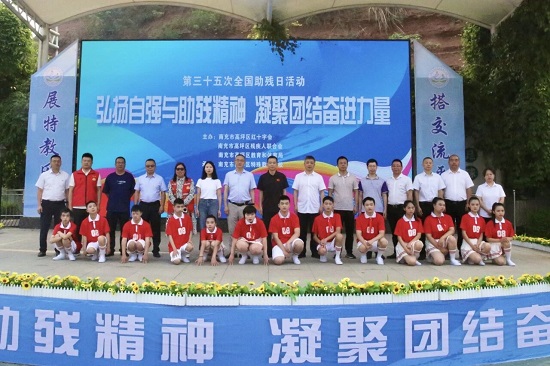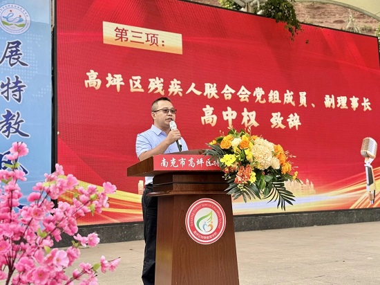 在第35个全国助残日到来之际,5月16日上午,高坪区特殊教育学校以“弘扬自强与助残精神,凝聚团结奋进力量”为主题,温情举办了助残日系列活动。区红十字会常务副会长杨安杰、高坪区教体局副局长蒋双全、南充临江东方建设集团工会主席易繁、区残联副理事长高中权及南充高中高坪校区、高坪志愿者协会、川北医学院麻醉学系等爱心人士齐聚一堂,用行动传递温暖,用爱心点亮梦想。