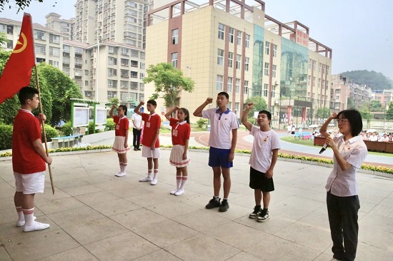 第一阶段活动结束后,第二届校园艺术周启动仪式暨入队入团活动接踵而至。少先队大队辅导员惠永莉宣布新队员名单,老队员为新队员戴上红领巾,稚嫩声音中透出坚定信念。团支部书记田密宣布新团员名单,教师代表为新团员佩戴团徽,庄严宣誓展现积极风貌。