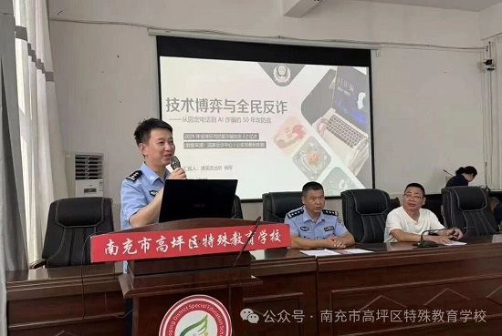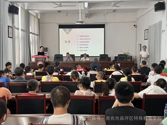 为进一步增强残疾儿童少年的法治意识,呵护其身心健康发展,提升自我保护能力,营造安全、法治、和谐的校园环境,9月15日下午,高坪特校组织全体师生在会议室开展了一场法治安全教育专题讲座。本次活动特邀清溪派出所教导员袁红文、副所长杨柳担任主讲人,由学校党支部书记、校长蒲世国主持。