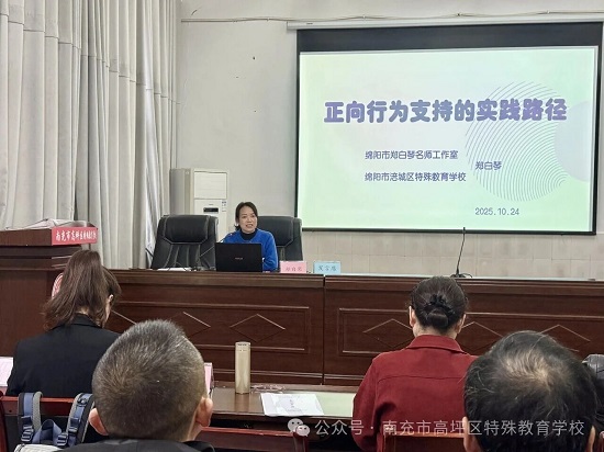 在专题分享环节,绵阳市郑白琴名师工作室领衔人郑白琴以《正向行为支持的实践路径》为题,结合丰富的一线教学案例,系统解析了行为支持的策略与方法,为教师有效应对学生行为问题提供了实用指导。工作室成员、安州区特殊教育学校教师白雪围绕《构建融合教育保障体系 让生命之花从“融”绽放》展开分享,从制度构建、资源整合、支持体系等多个维度,阐述了如何为特殊儿童营造真正“有温度、有支持”的融合教育环境。