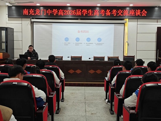 为帮助学生调适备考状态、优化复习策略,进一步激发与凝聚备考内生动力,1月15日下午,南充龙门中学举办了高2026届高考备考交流讲座。本次讲座由党委办主任、高三班主任龚伟波主讲。
