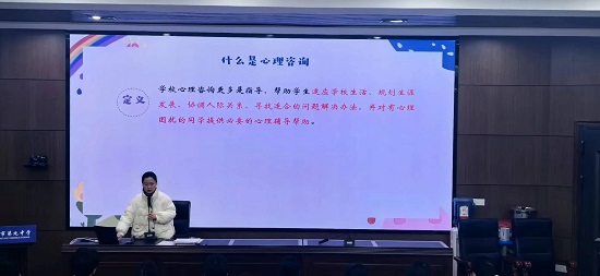 会议伊始,蒙艺主任介绍了本次培训会的议程和参会人员。他指出,心理委员是学校心理健康教育工作中的重要一环,肩负着观察、陪伴、沟通的三重职责。