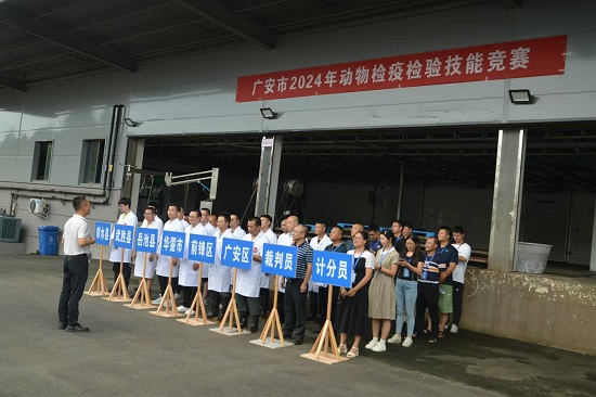 2024年9月23日,由广安市农业农村局主办,广安市动物卫生监督所、岳池县农业农村局、岳池县动物卫生监督所承办的广安市2024年动物检疫检验技能竞赛在岳池县双鑫食品有限责任公司举行。