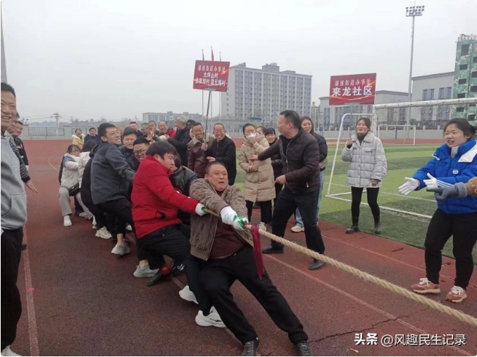 “脚应该分别叉开站,这样才使得上力……”绳子两头的队员拼尽全力,在同事们的加油助威声中憋足劲使力拉,看到自己这头的队员输掉比赛,一旁围观的老百姓也忍不住参与进来,为队员加油出主意。比赛现场,赢的振臂欢呼跳跃,输的人仰马翻,大家看的喜笑颜开。