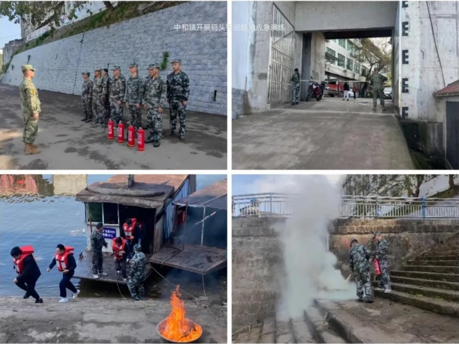 此次演练活动以模拟中和镇码头废弃机油回收桶起火为背景,经管船办人员现场确认火情后报告指挥长。在模拟灾情发生后,中和镇立即启动中和镇码头密集场所应急预案,同时,辖区应急民兵立即对码头人员、客运人员和受威胁群众进行疏散转移,经过大家齐心协力,有条不紊地组织转移、灭火,有效地避免了人员伤亡和群众财产损失,演练任务在大家的共同努力下圆满完成。