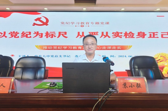 会议第一项,苏小毅同志以“以党纪为标尺,从严从实检身正己”为题作专题党课。苏书记从深入学习领悟习近平总书记关于加强党的纪律教育的重要论述、准确把握新时代加强党的纪律教育的重要经验、高质量推动党纪学习教育持续走深走实三个方面,带领全体党员学纪、知纪、明纪。