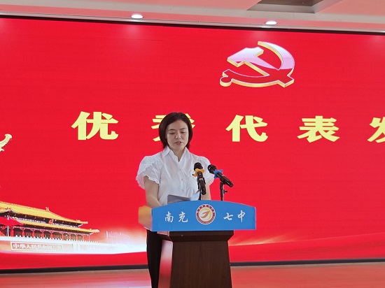 会议第三项,南充七中党总支副书记、校长黄亭婷宣读了《中共四川省南充市第七中学总支部委员会关于表扬南充七中优秀党务工作者、优秀共产党员的通报》文件。学校党总支书记苏小毅同志为受到表扬的优秀党务工作者和优秀共产党员颁发了荣誉证书。