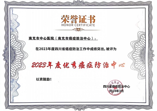南充市癌症防治中心:连续两年荣获 “四川省年度优秀癌症防治中心”称号