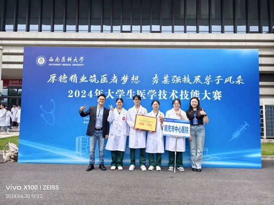 自接到比赛通知以来,南充市中心医院临床技能中心精心筹划,组建专业强大的师资团队,制定周密详细的培训计划,强化各项操作的细节指导。4名参赛选手认真备赛、刻苦练习,在比赛中沉着冷静、从容应对,认真分析题目,熟练操作技能,以扎实的医学本领和良好的心理素质,在多个参赛队伍中脱颖而出,取得了团体一等奖的优异成绩。