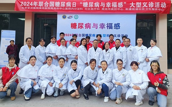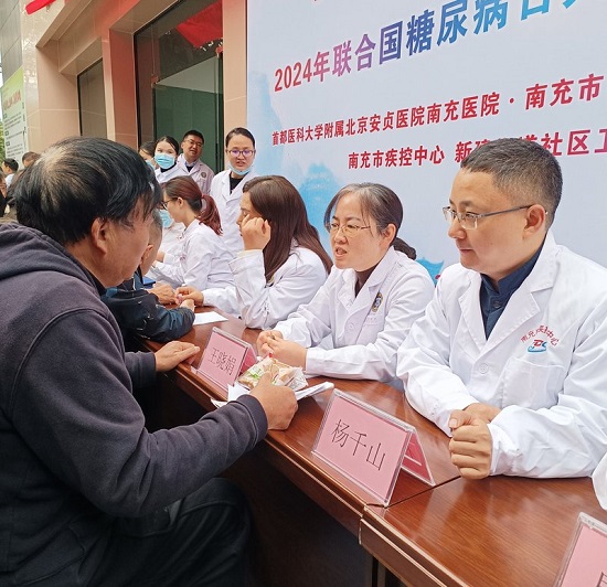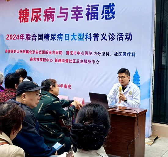 2024年11月14日是第18个联合国糖尿病日。11月10日,首都医科大学附属北京安贞医院南充医院(南充市中心医院)(以下简称“北京安贞南充医院”)内分泌科、社区医疗科、糖尿病专科小组联合南充市疾控中心、顺庆区新建社区卫生服务中心,开展了以“糖尿病与幸福感”为主题的大型科普义诊活动,提高了公众对糖尿病的认识和预防意识。