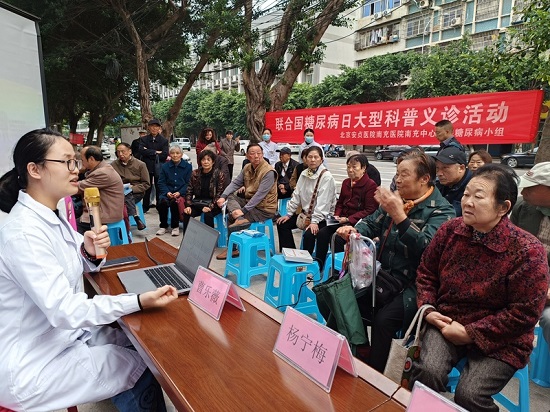 早晨7:30,顺庆区新建社区卫生服务中心人头攒动。由南充市疾控中心慢病所所长杨千山,北京安贞南充医院内分泌科主任医师王晓娟、护士长易诗琼,新建社区医疗科科长杜晓秋等组成的义诊团队耐心为患者答疑解惑,纠正糖友们在糖尿病防治过程中的常见误区。