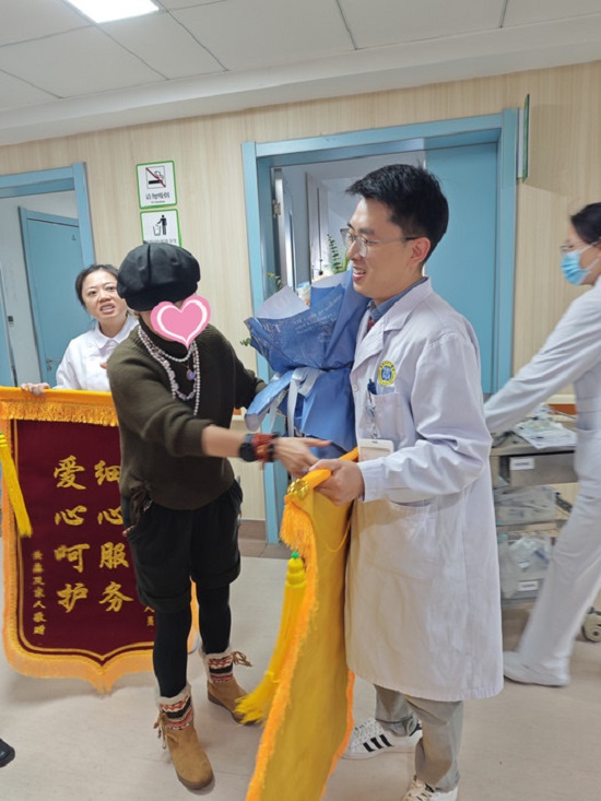 “您的医术与关怀,让我安心、感动,谢谢您温暖的付出!”“细心服务,爱心呵护!”近日,患者黄先生和爱人一起,为首都医科大学附属北京安贞医院南充医院·南充市中心医院(以下简称“北京安贞南充医院”)消化内科医护人员送上鲜花和锦旗致谢。锦旗上闪亮的文字,诠释了一段温暖的医患真情。