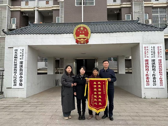 锦旗的背后,是便民服务中心窗口工作人员践行为民服务宗旨、助力居民解决困难的暖心故事。2022年3月,在潆溪街道大力推动民生保障工作进程中,因部分群众对政策性惠民保险理解有偏差未能参加相关保险,大坪山村村民张碧清及老伴庞先贵也位列其中。为此,街道社会事务办工作人员会同村两委及驻村干部在入户宣传时向她推荐并动员夫妻俩购买了“银龄安康”(老年意外保险),也正是这份保险为她家大大减轻了家庭经济负担。